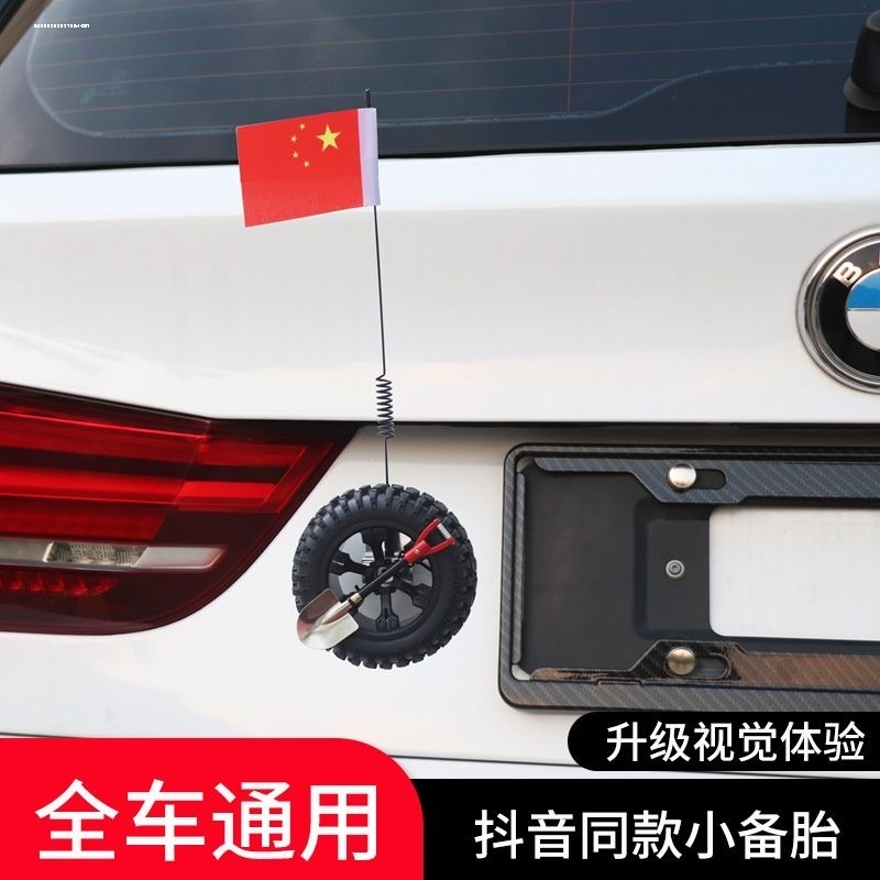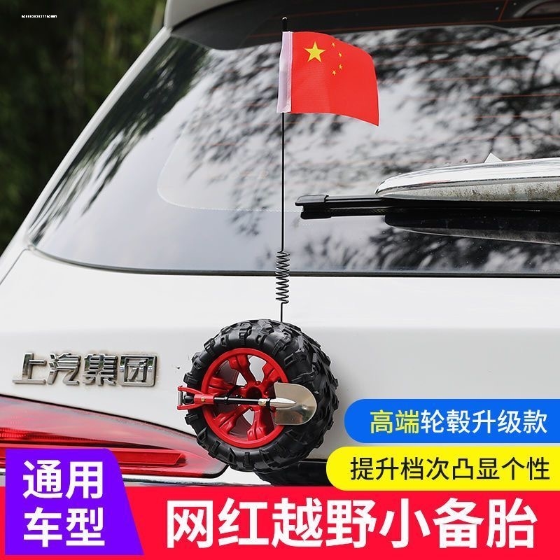 创意搞笑网红同款 汽车装 饰小备胎后备箱迷你轮胎天线红旗越野个性