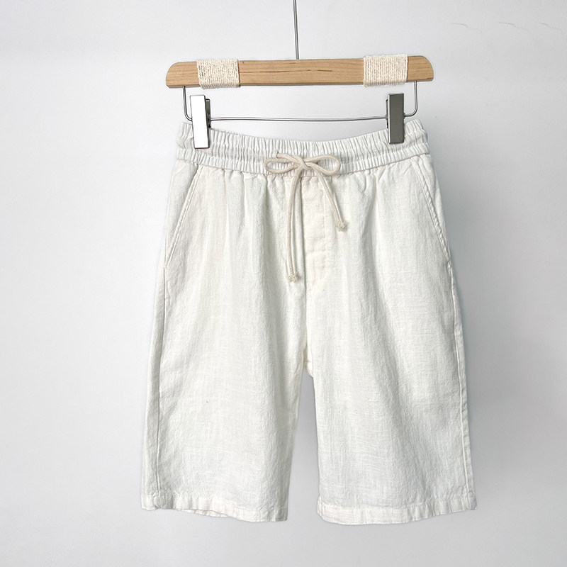 直筒宽松纯色日系复古休闲五分裤 亚麻短裤 凉感粘麻中裤 薄款 男夏季