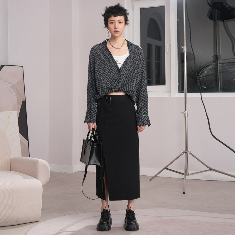 慵懒宽松落肩休闲秋季 女中长款 chic复古格纹衬衣潮流 衬衫 森马长袖