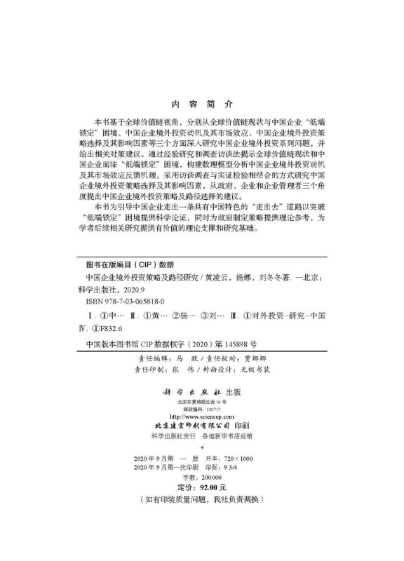 期货 社书籍KX 中国企业境外投资策略及路径研究 刘冬冬 著 杨娜 正版 黄凌云 科学出版 股票投资 京联