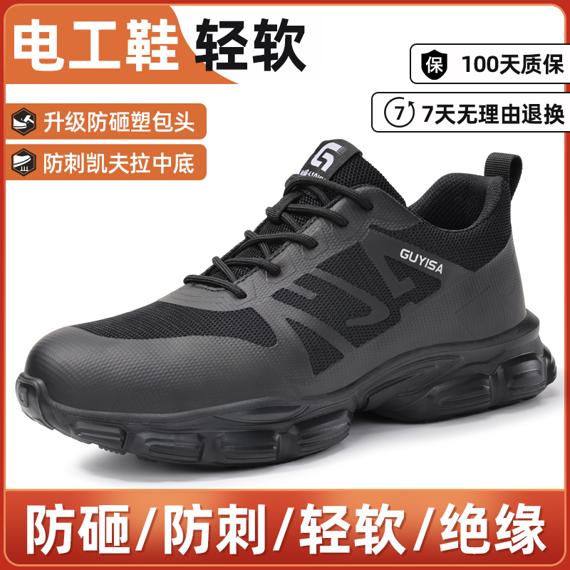 夏季 男士 透气轻便防砸防刺穿夏天钢头老保带钢板 男款 古伊萨劳保鞋