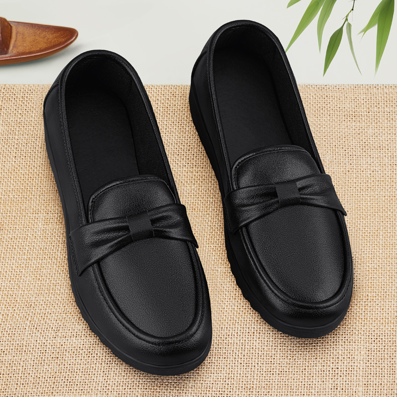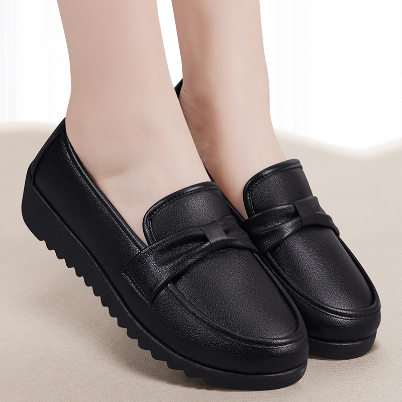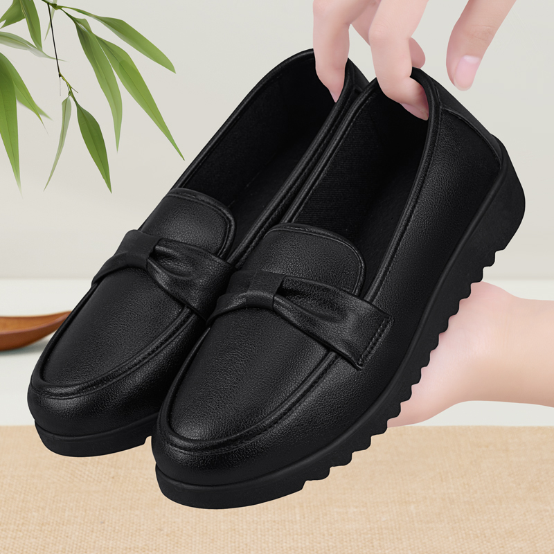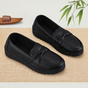 防油黑色老北京布鞋 一脚蹬上班久站不累工作皮鞋 女防滑新款 厨房鞋