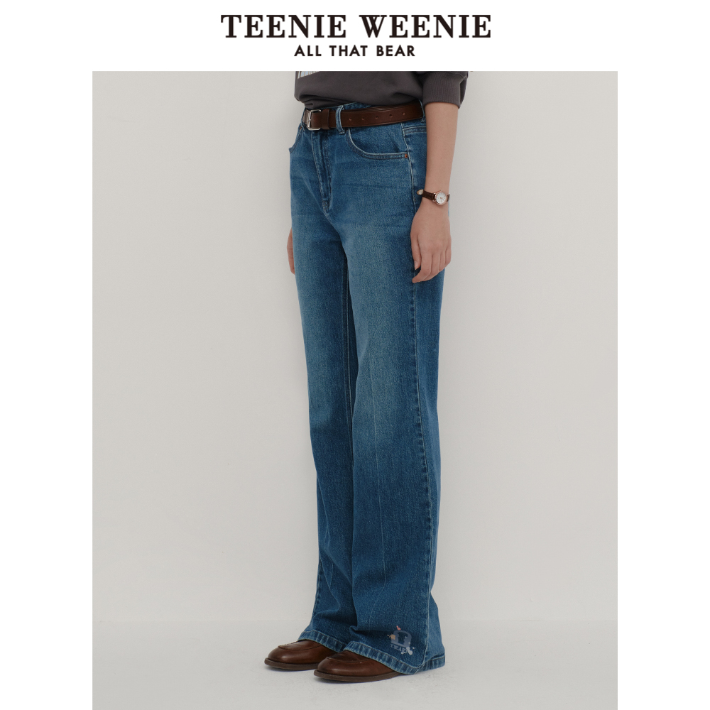复古休闲风港风长裤 TeenieWeenie小熊秋季 棉莱赛尔混纺喇叭牛仔裤