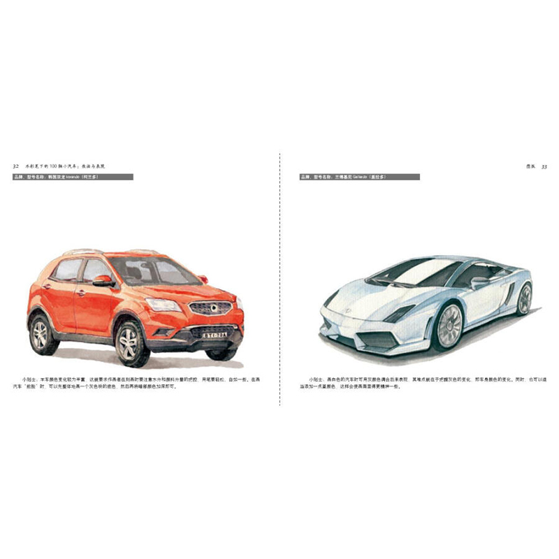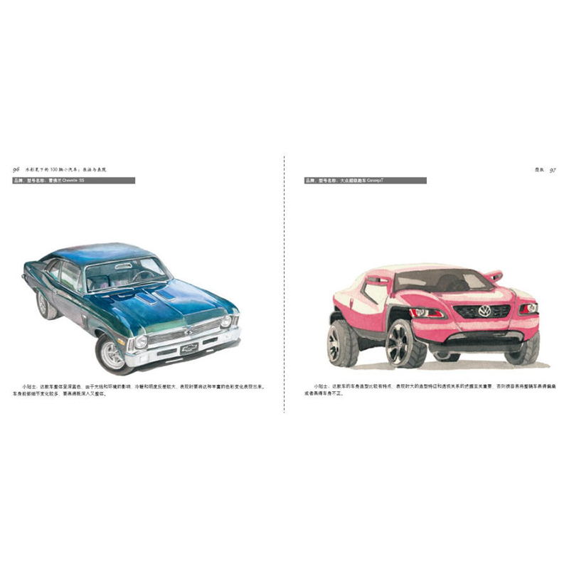 小汽车水彩手绘技法书籍 车型介绍 水彩笔下 手绘汽车年代品 工具和技法详解 水彩绘画 经典 技法与表现 100辆小汽车 书籍 正版