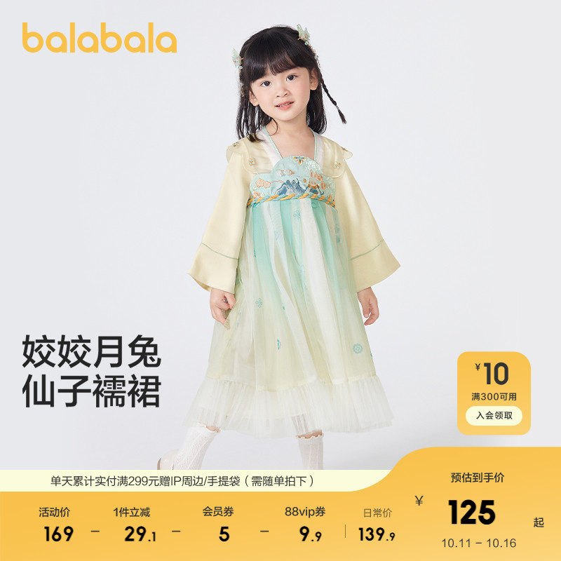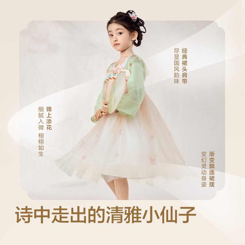 国风襦裙汉服公主裙甜 儿童宝宝长袖 巴拉巴拉童装 女童连衣裙春秋装