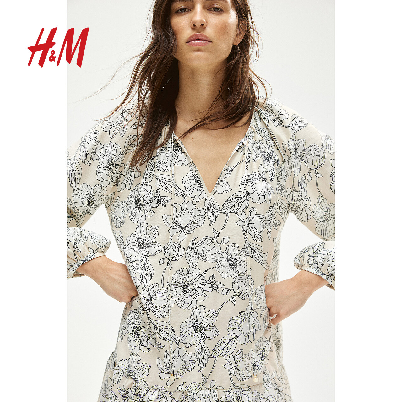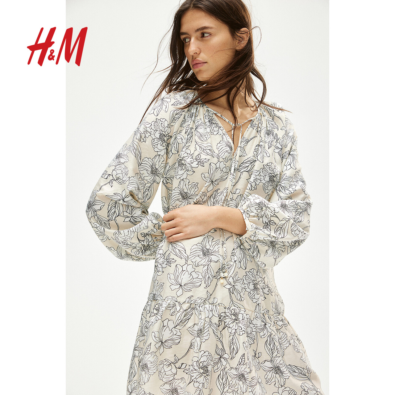灯笼袖 缎面大摆裙插肩袖 A字连身裙1299908 连衣裙2025新款 HM女装