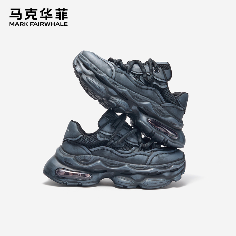 增高老爹鞋 黑色运动鞋 2025新款 潮流网面透气男士 秋季 马克华菲男鞋
