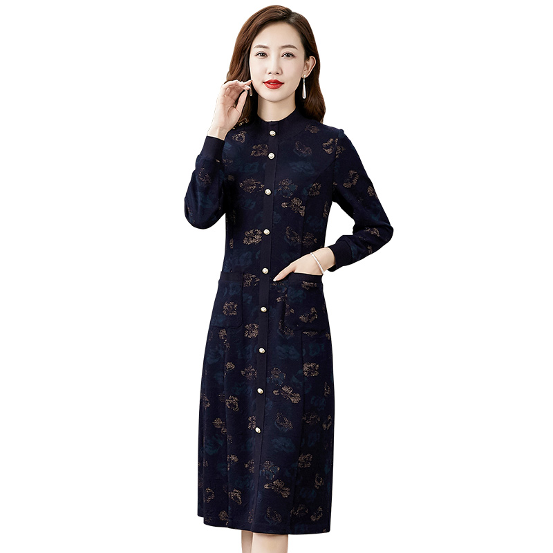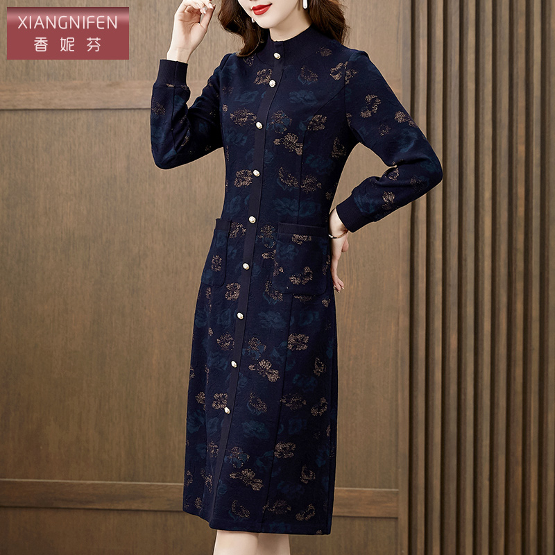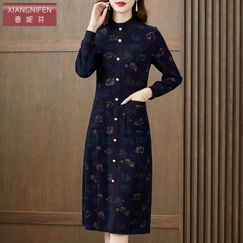 妈妈装 新款 提花优雅气质连衣裙女2025秋季 香妮芬高端轻奢立领时尚
