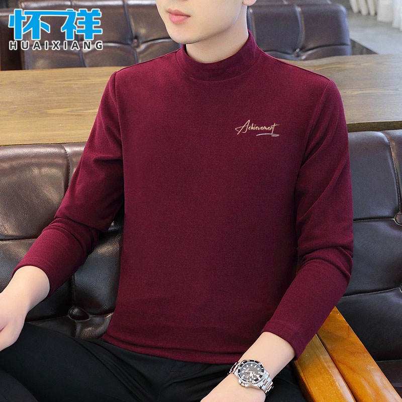 磨毛内搭中领双面德绒长袖 2025秋冬季 男士 半高领打底衫 秋衣 新款