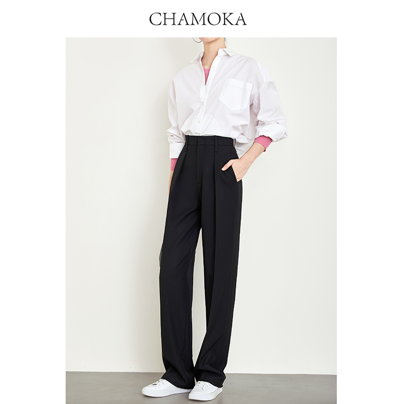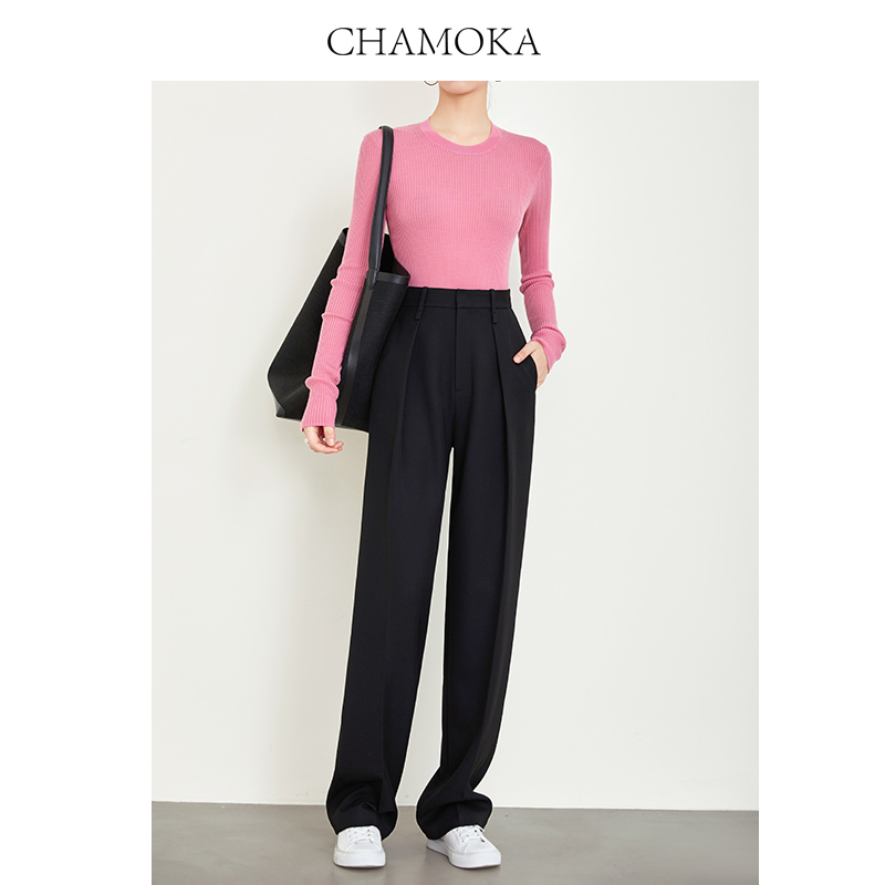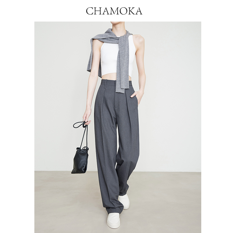 裤 子格雷系阔腿裤 老钱风直筒裤 显瘦裤 女 休闲裤 夏莫卡高级灰色西装