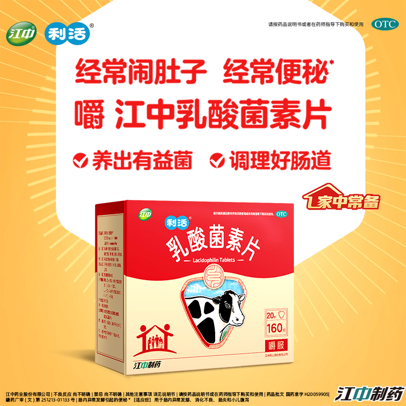 江中利活乳酸菌素片胃药儿童益生菌调理肠胃肠道便秘腹泻健胃消食
