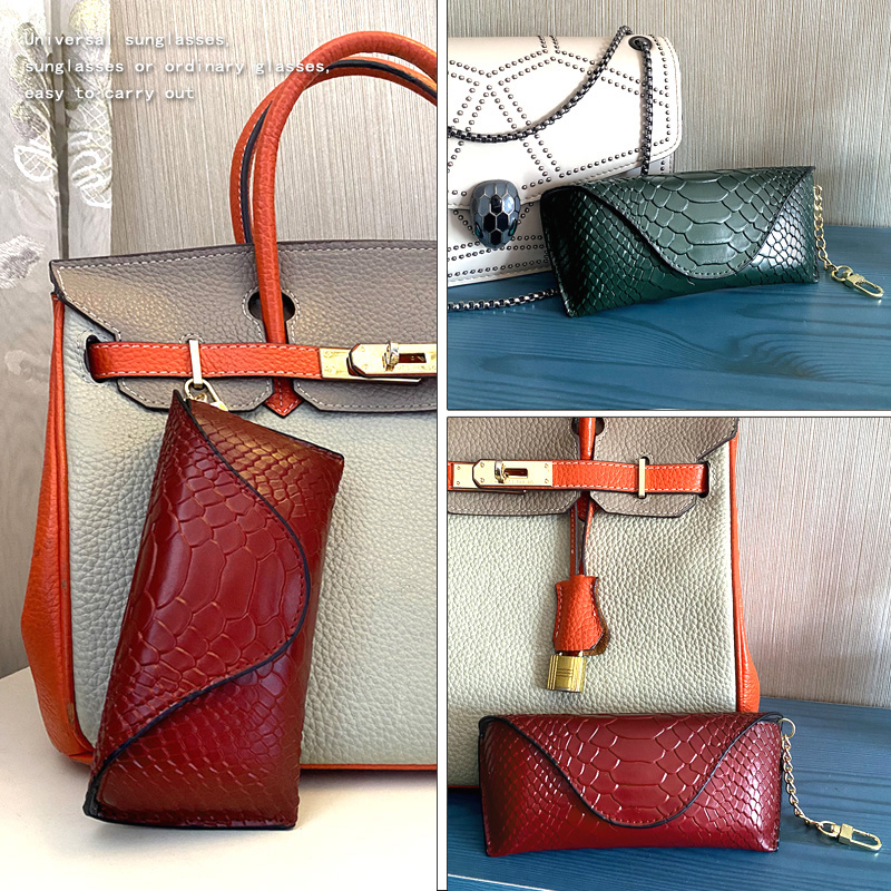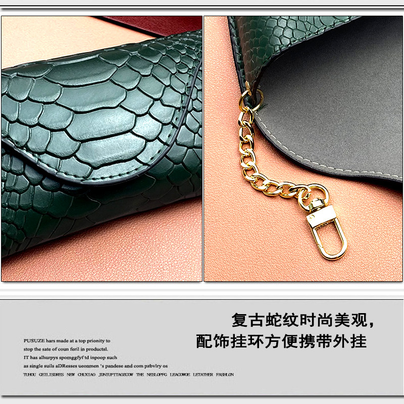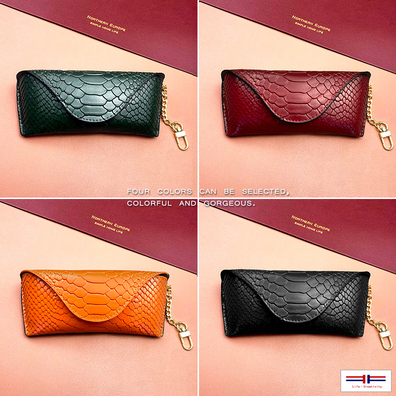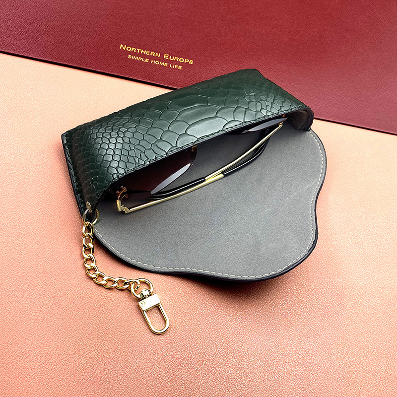 牛皮通用男女绿色防压眼镜包便携眼镜收纳袋近视眼镜盒防掉墨镜包
