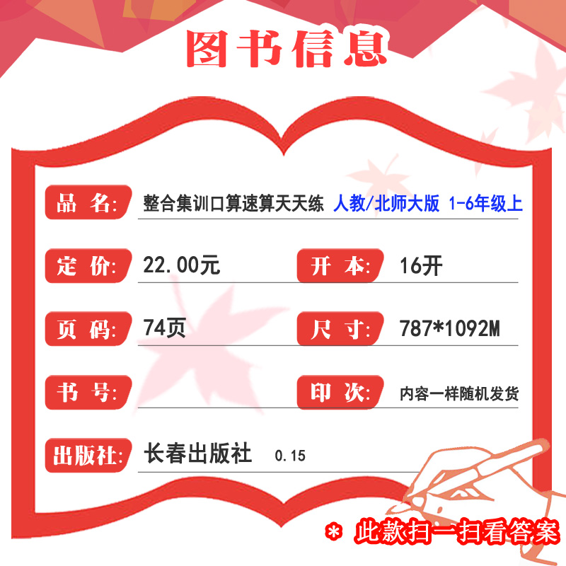 长春出版 小学生计算口算心算速算巧算练习题 社 大开本单册 整合集训口算速算天天练1一2二3三4四5五6六年级上下册人教RJ北师大BS版