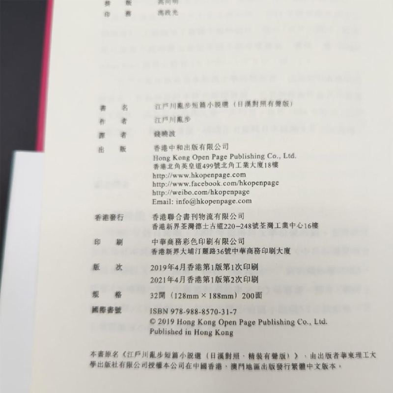 精装 江戶川亂步短篇小說選 著 钱晓波 江户川乱步 香港中和版 日漢對照有聲版 港台原版 正版 译 现货