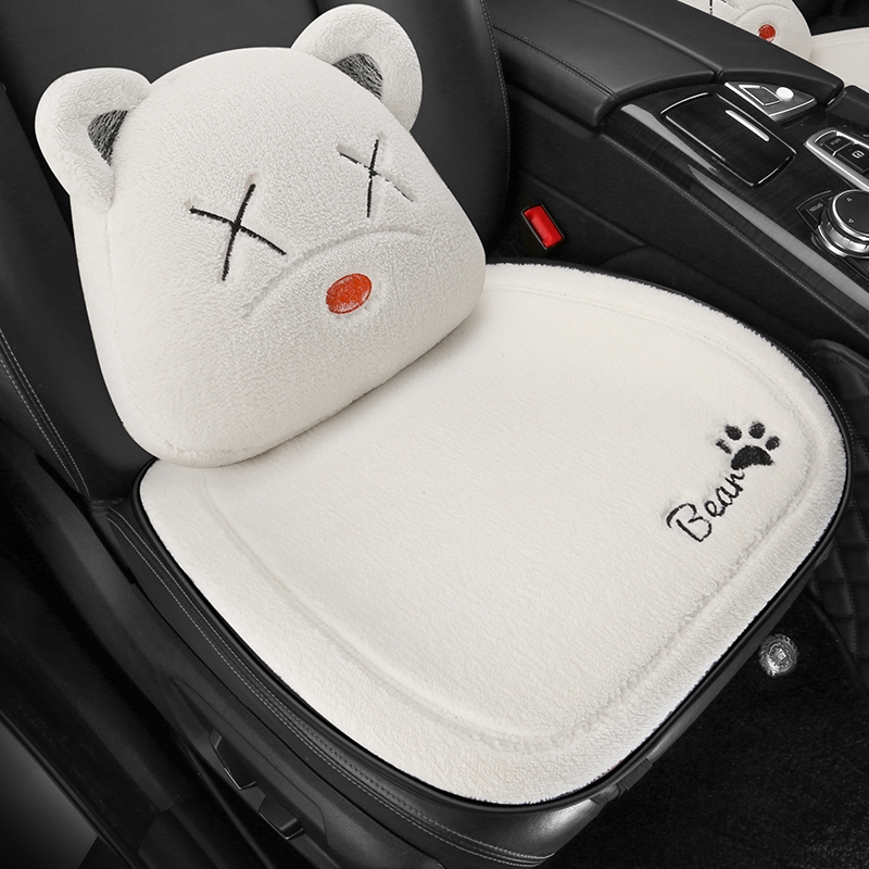 汽车坐垫毛绒冬季 车垫可爱卡通女神小熊玉米绒冬天车内座椅垫保暖
