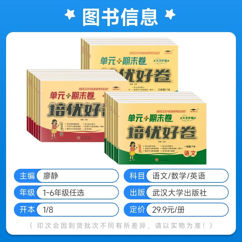 北师大苏教西师冀教外研译林版 官方正版 期末卷培优好卷一二三四五六年级上下册语文数学英语试卷测试卷全套人教版 单元 培优小状元