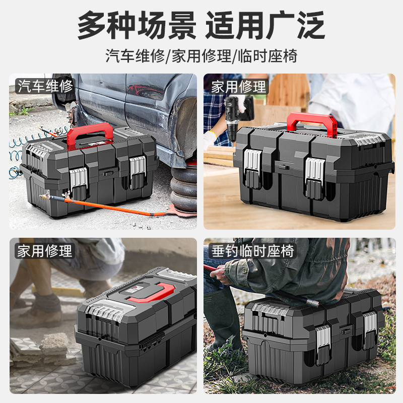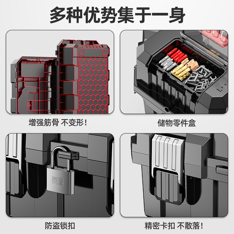 质造五金工具箱收纳零件三层折叠加厚工具箱手提式 收纳盒家用电工