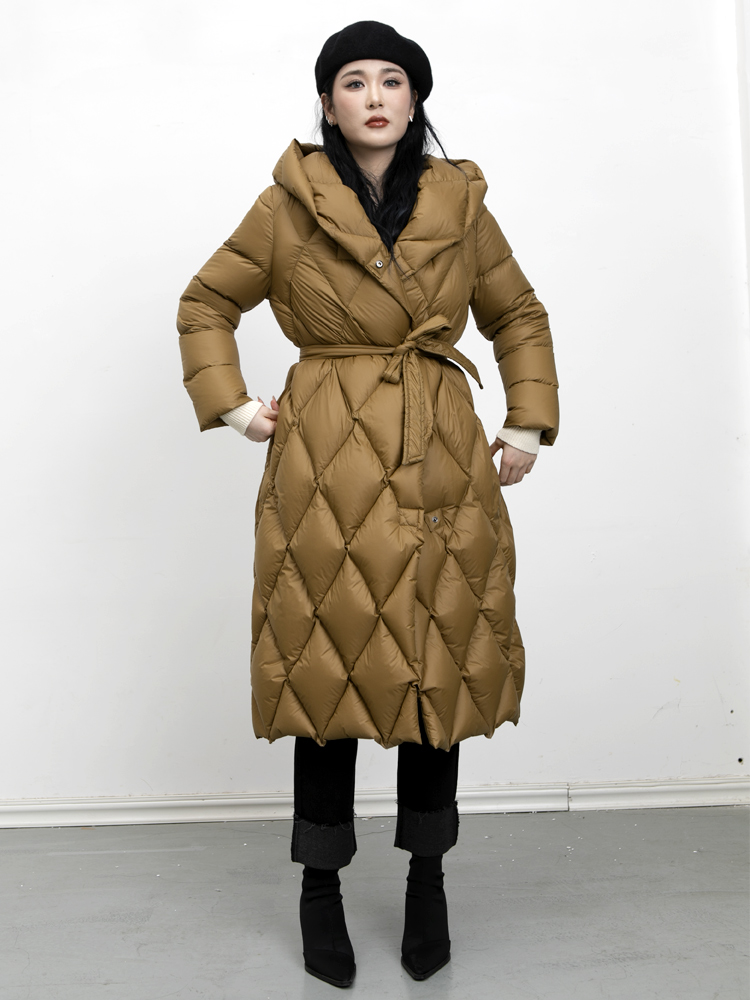 羽物2025年新款 VL2210 菱形格子羽绒服女95%白鹅绒收腰外套长款