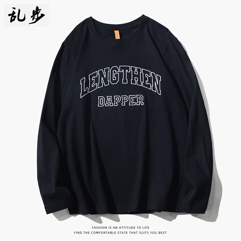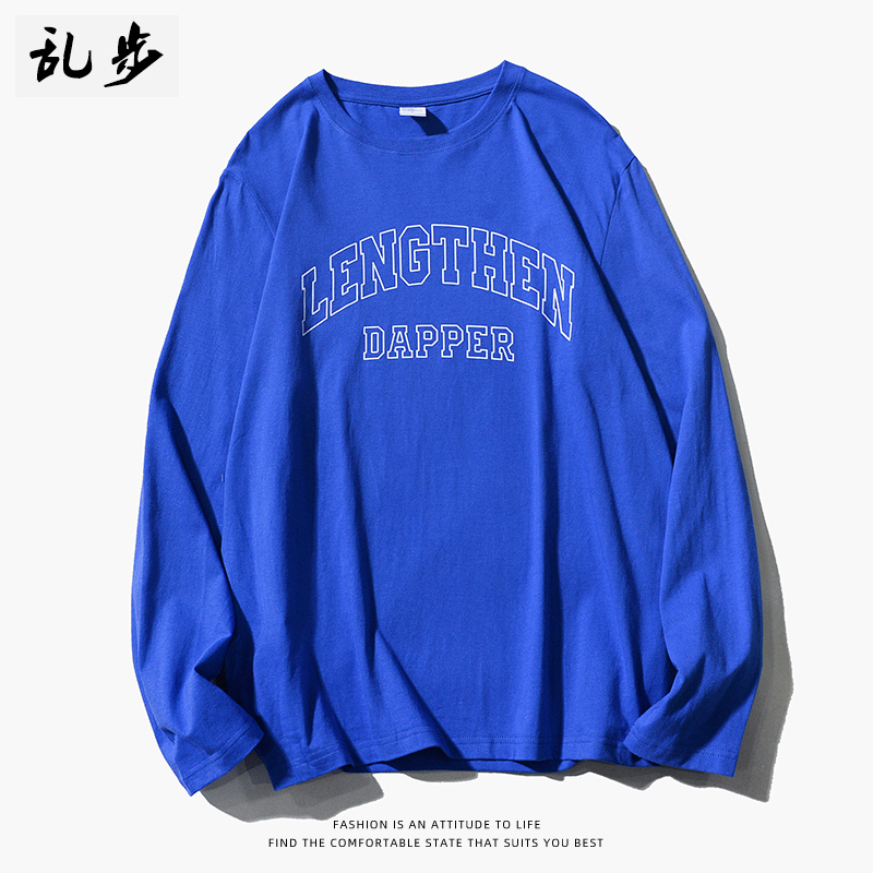 高级感bf长袖 新款 无帽上衣潮 复古枣红色圆领T恤男女2025秋季 美式