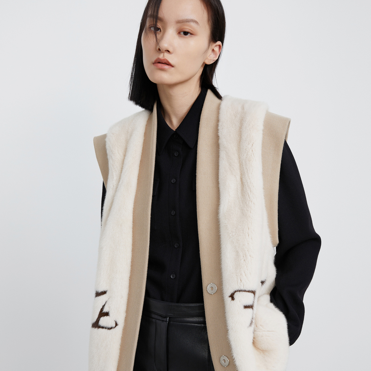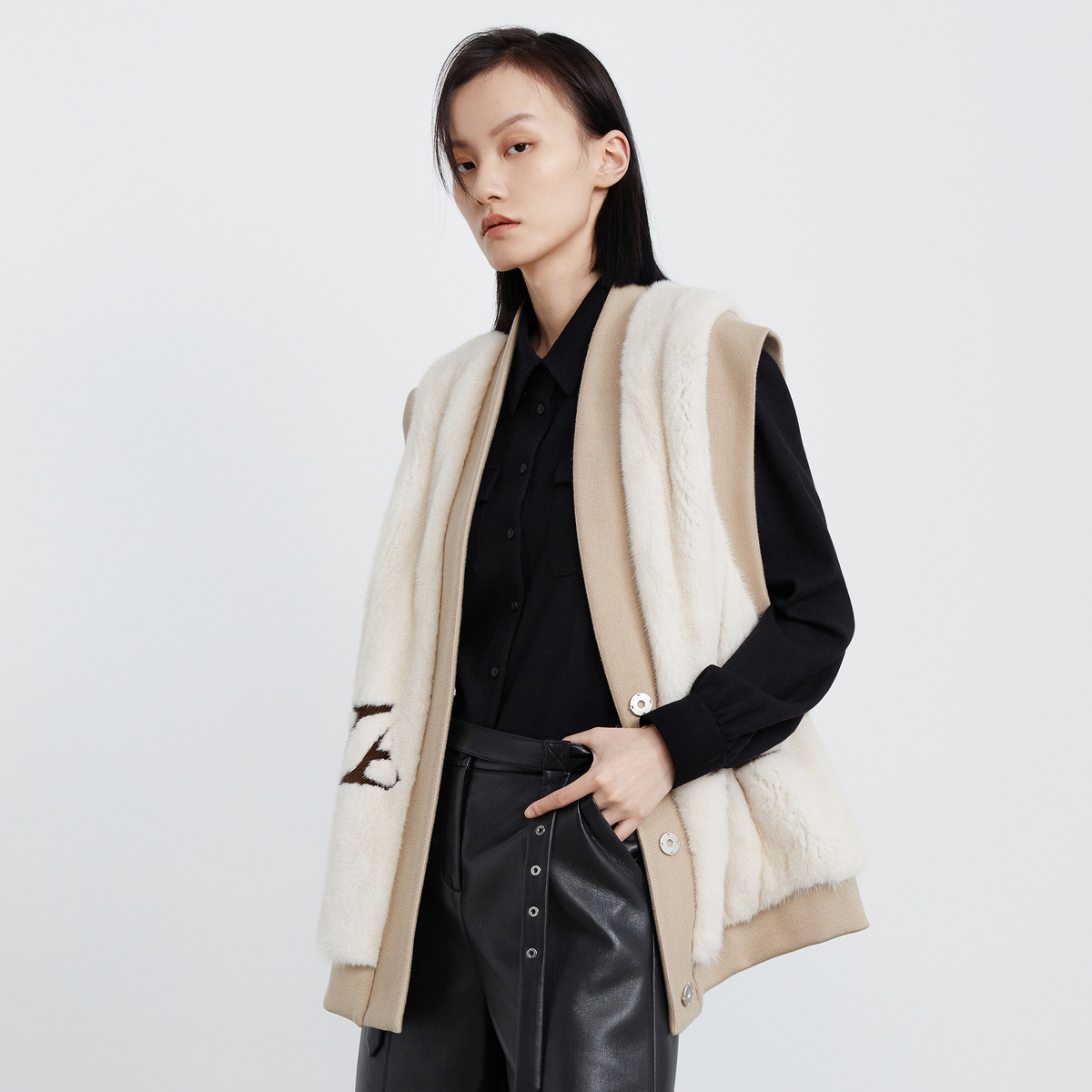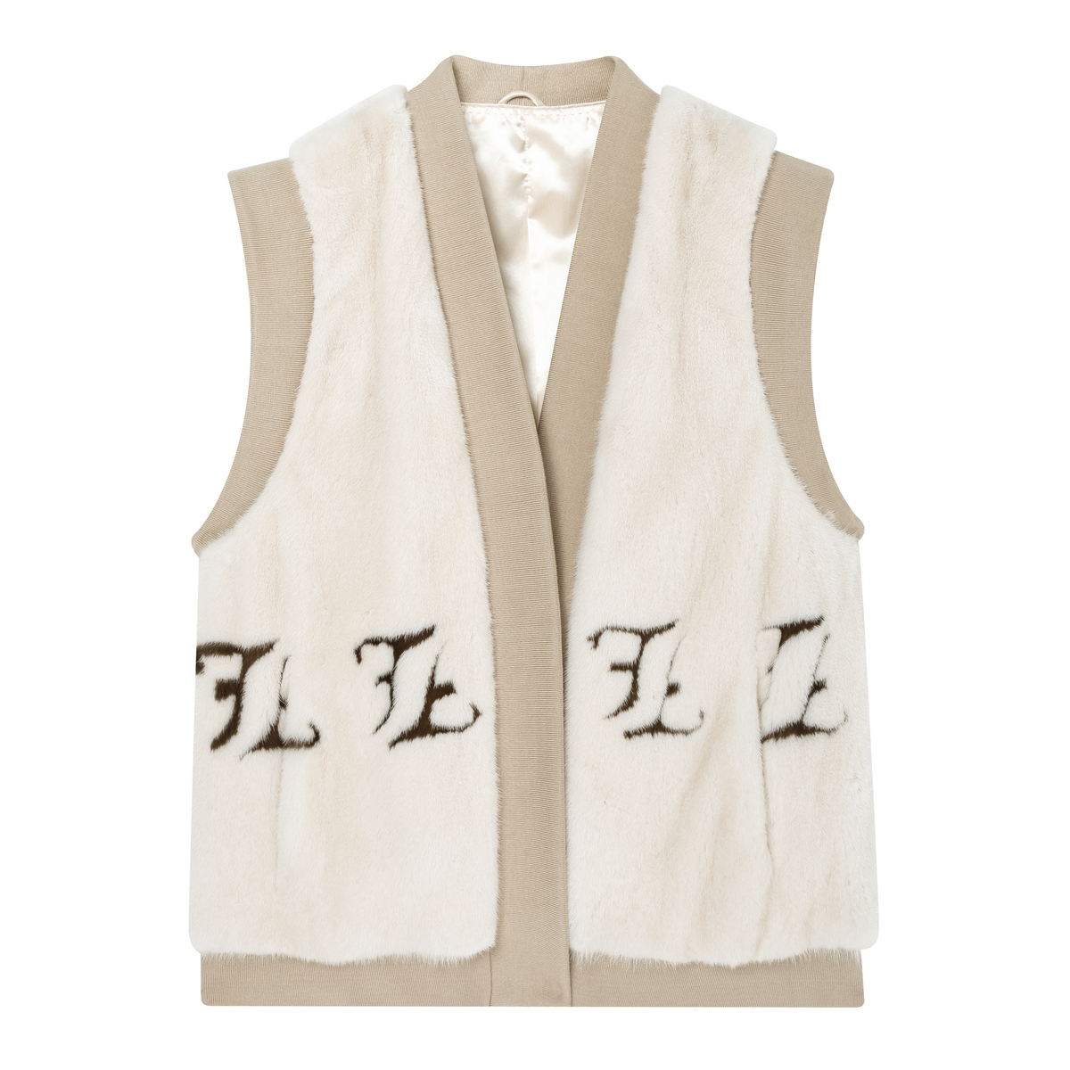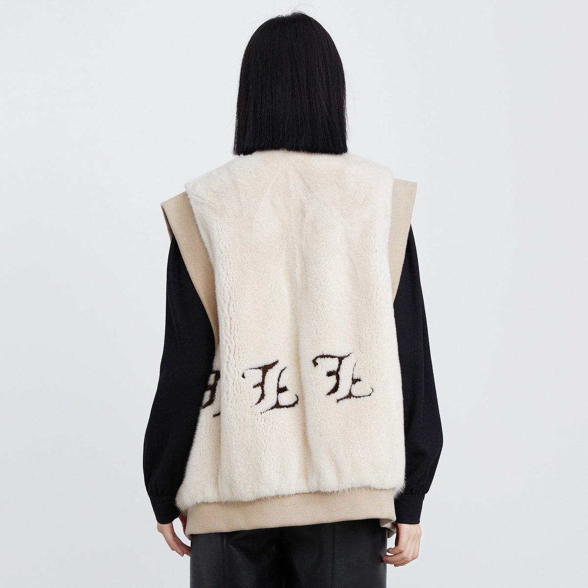 H·GENTEEL荷高女装 驼色拼接字母水貂毛马甲 冬新品