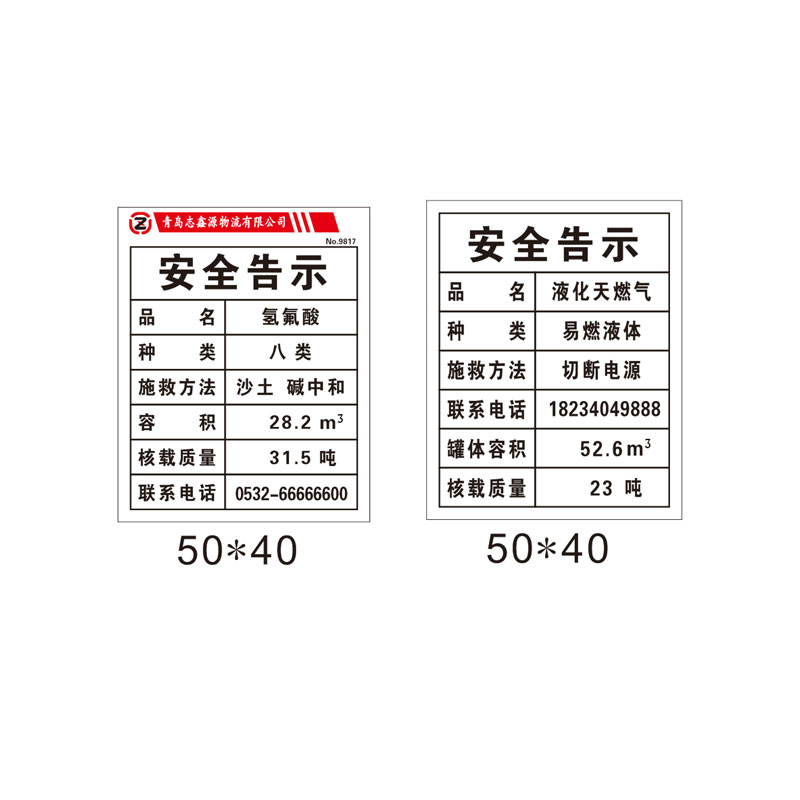 货车油罐车安全警示牌贴纸定制危险品铝牌警示牌易燃气体牌液体牌
