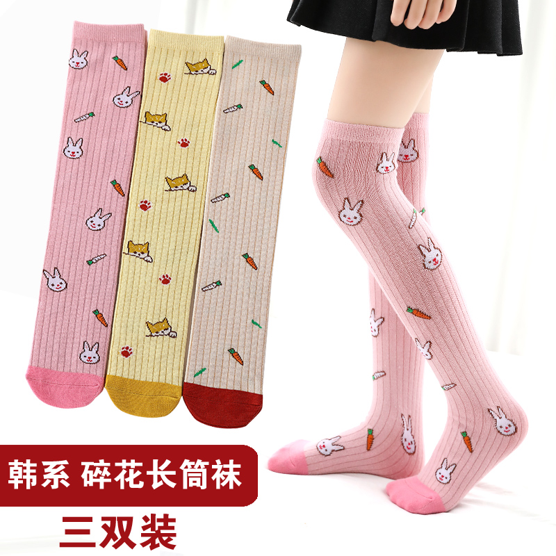 女童袜子春秋棉袜宝宝长筒袜过膝秋冬季 长袜儿童高筒袜花边公主袜