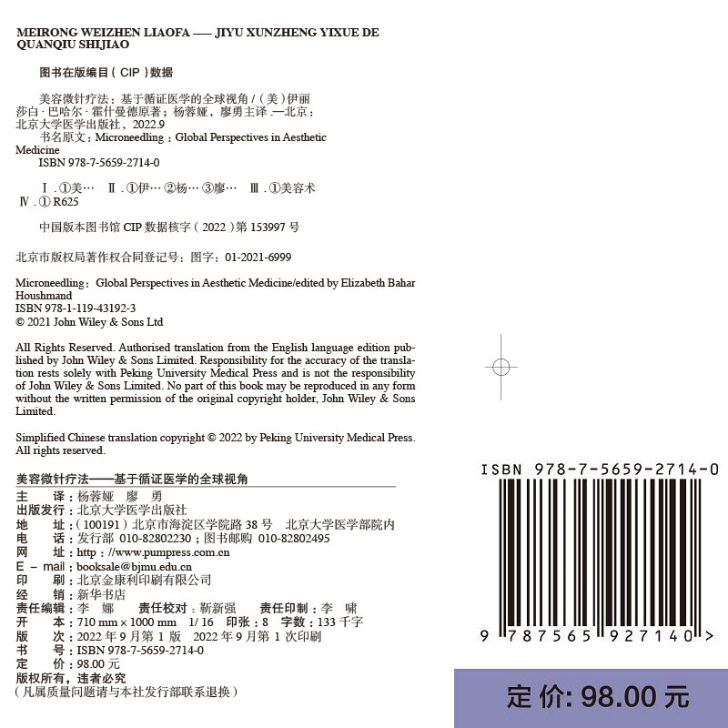 北京大学医学出版 现货美容微针疗法 廖勇主译 全球杨蓉娅 社9787565927140 基于循医学