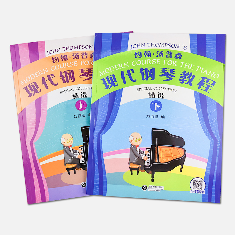 社 视频方百里大汤钢琴幼儿儿童初学自学入门钢琴基础练习曲教程教材书籍上海教育出版 正版 约翰汤普森现代钢琴教程精选上下册附扫码
