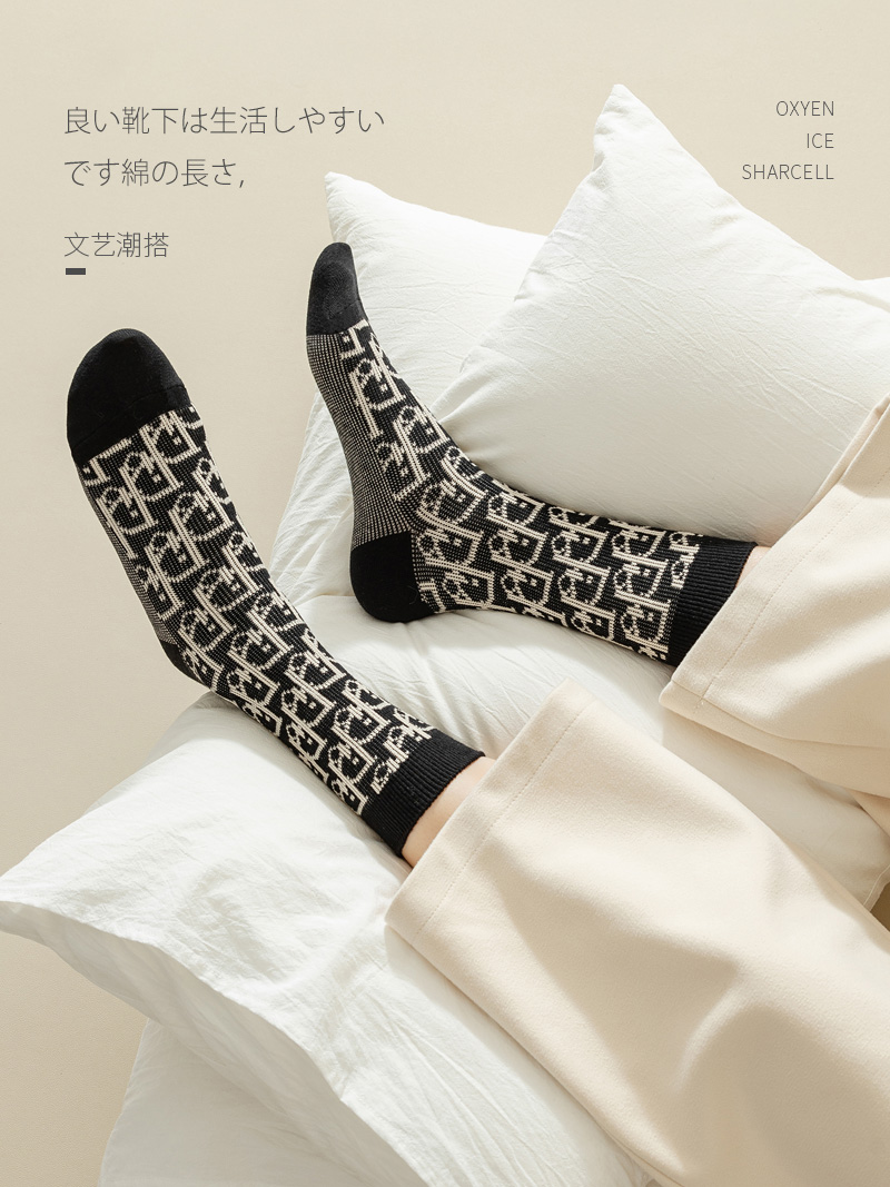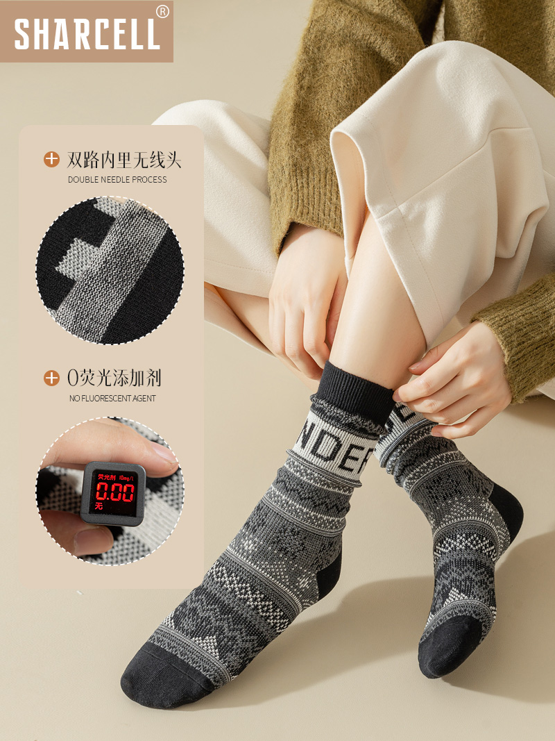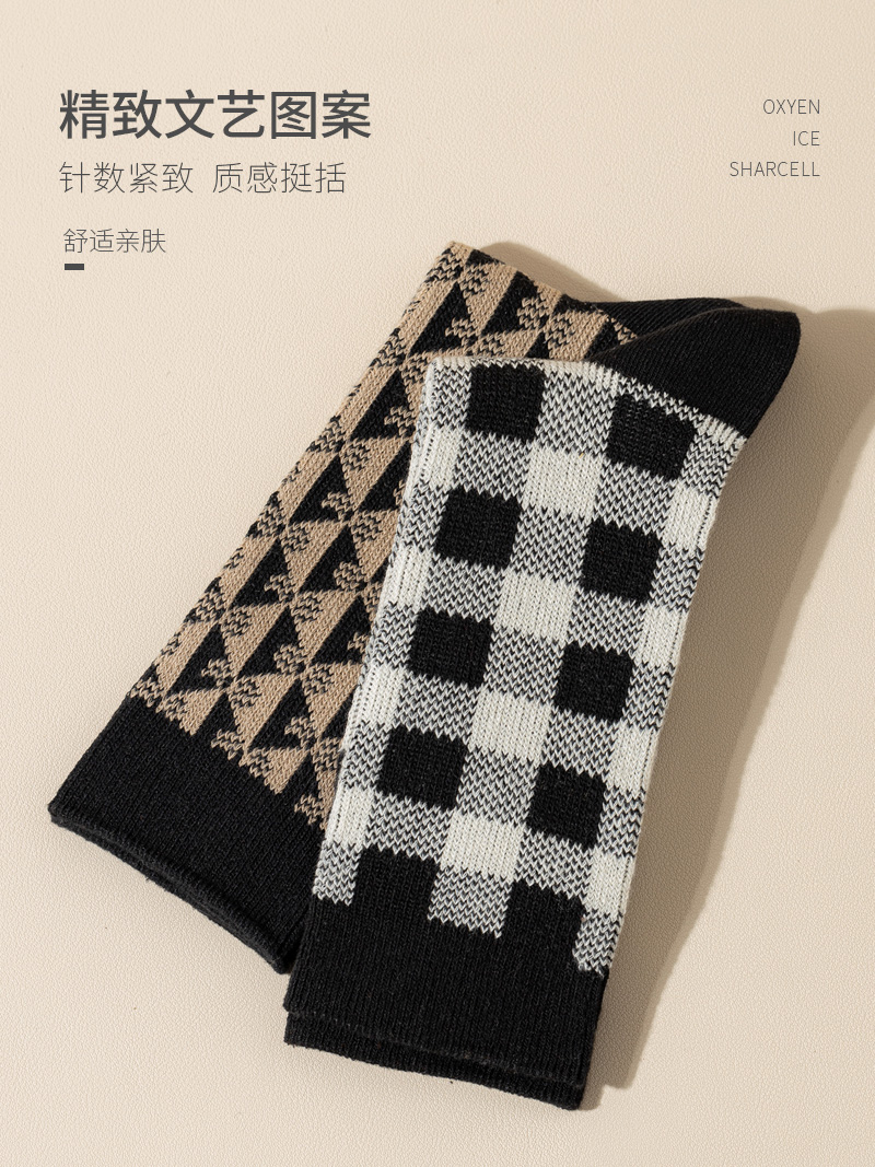 袜子女秋冬纯棉黑色中筒袜日系复古加厚棉袜堆堆长筒冬季 长袜潮