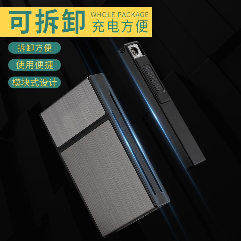 创意烟盒打火机一体20支装 女细烟专用高档 便携男超薄防风充电个性