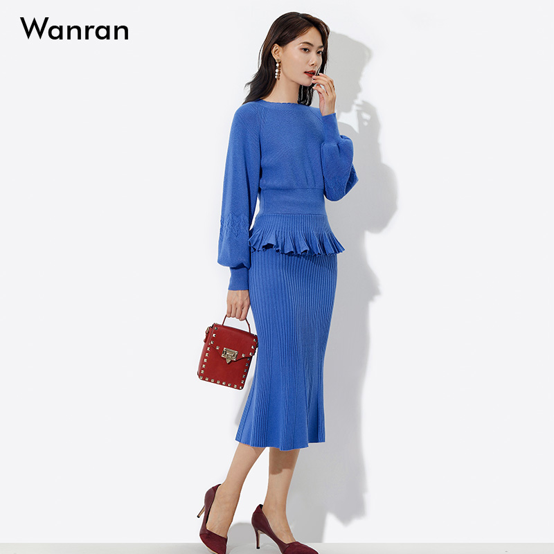 鱼尾半身裙套装 2025秋季 气质毛衣上衣女 复古灯笼袖 两件套 新款