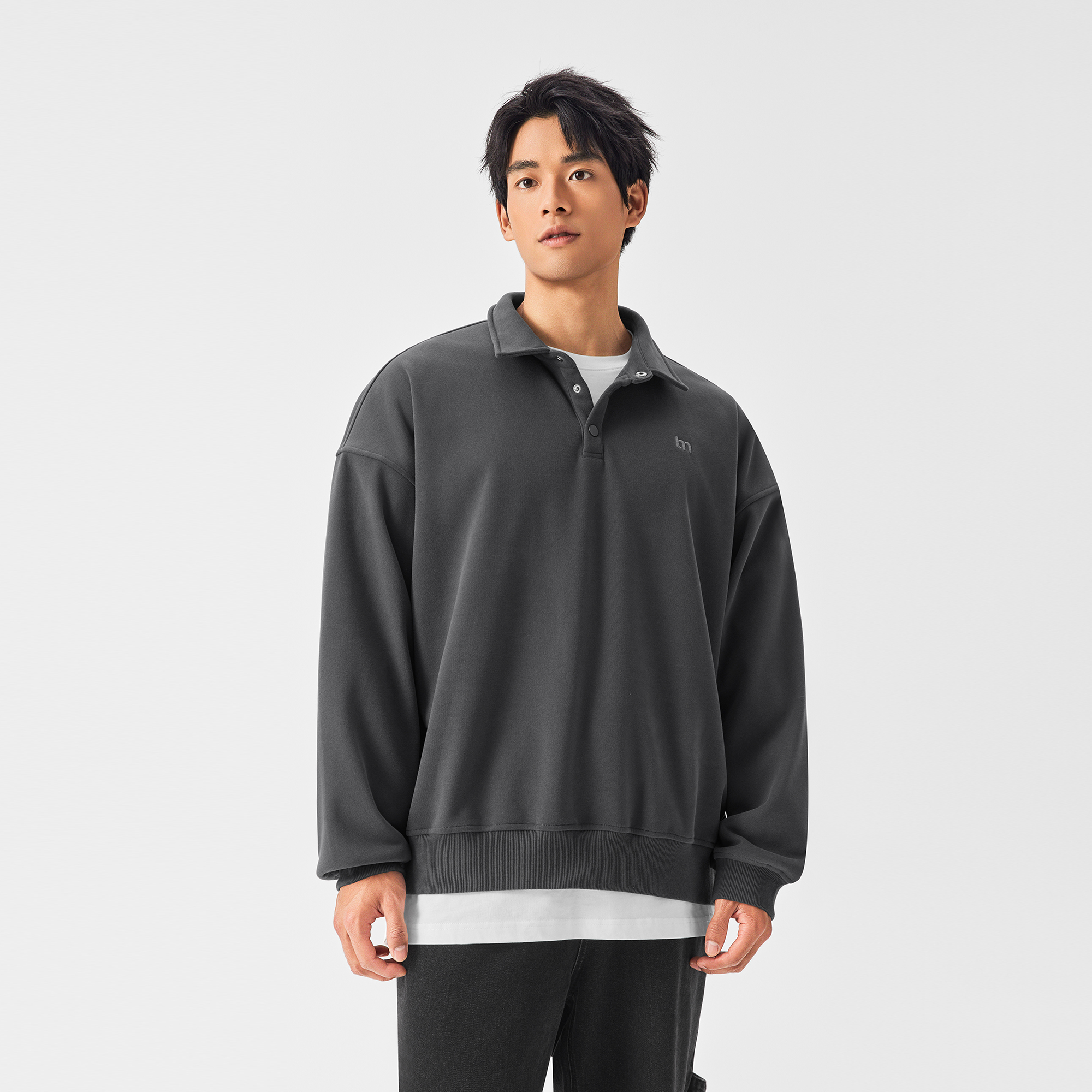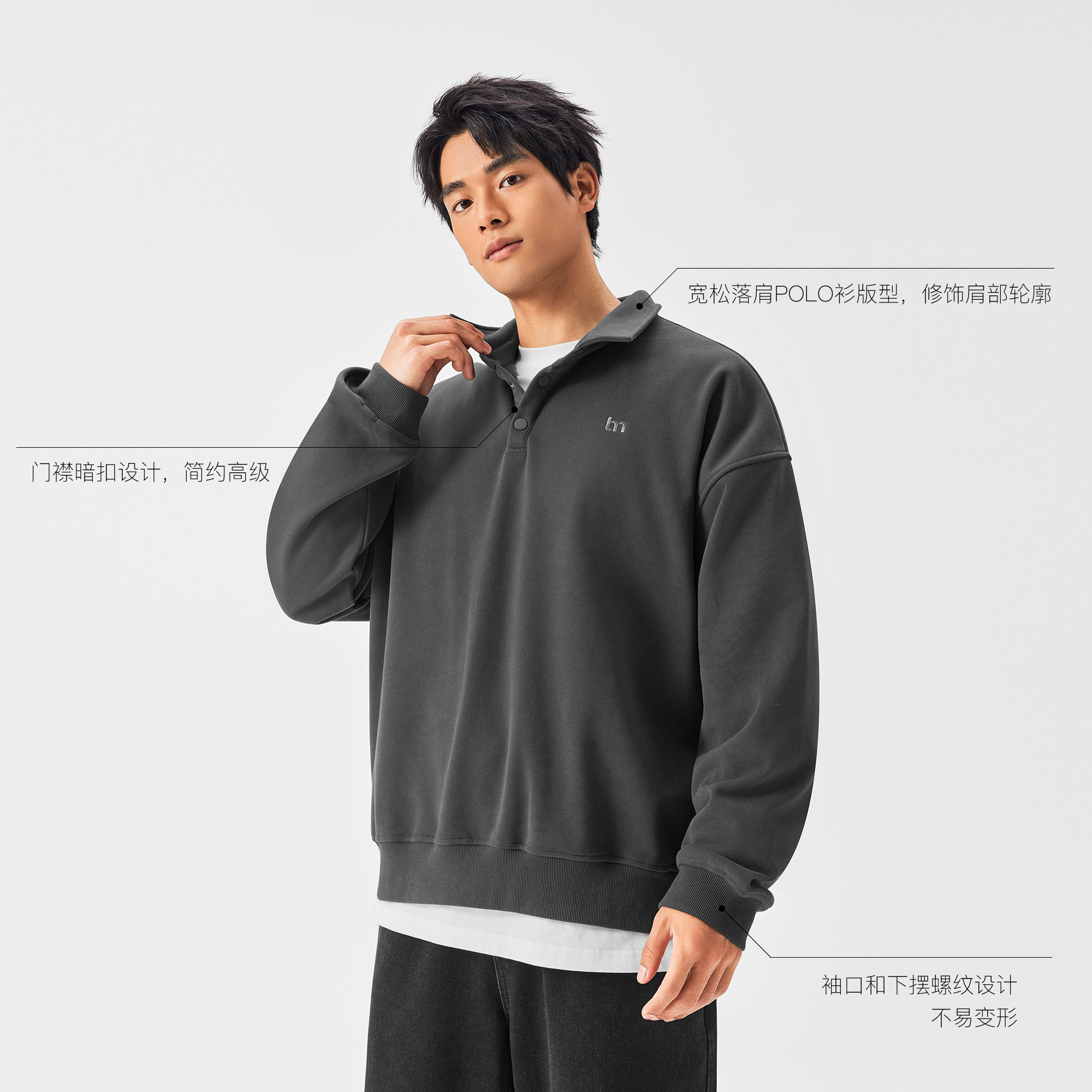 长袖 美式 翻领宽松上衣潮 BM加绒Polo领刺绣卫衣秋冬新品 BODYDREAM