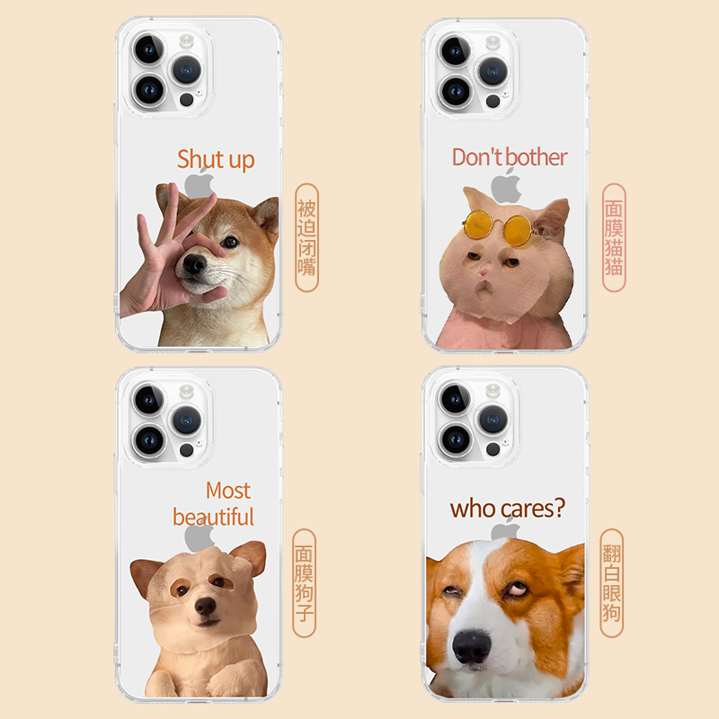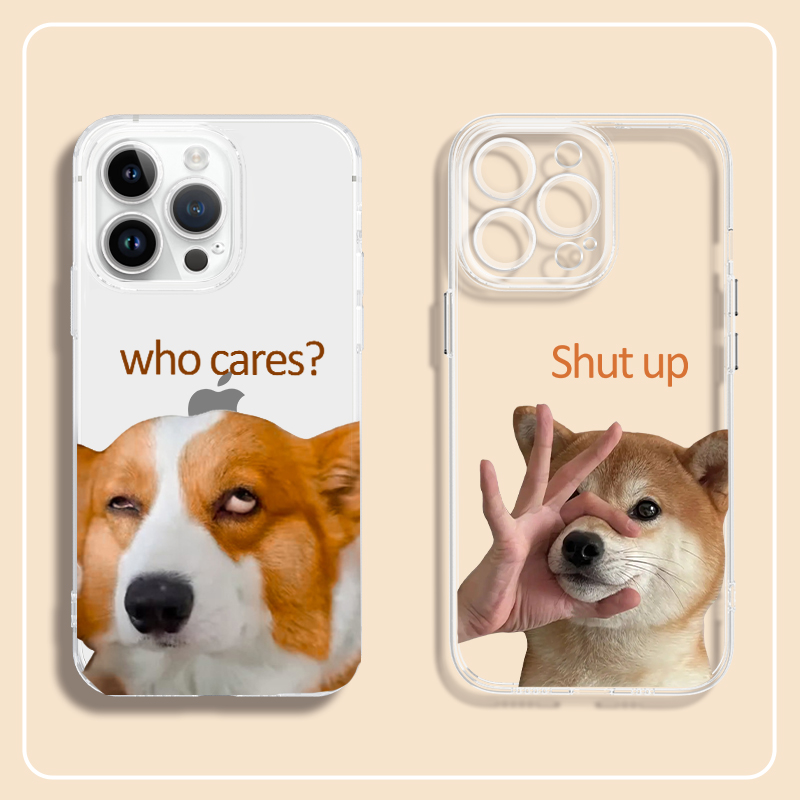 适用于苹果16手机壳ok被迫闭嘴2024新款 13mini趣味小狗iPhone17 沙漠金15Pro透明软潮壳14ProMax防摔全包边12
