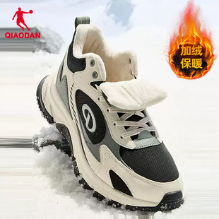 子皮面防水黑色休闲鞋 乔丹棉鞋 男2025秋冬户外高帮加绒保暖运动鞋