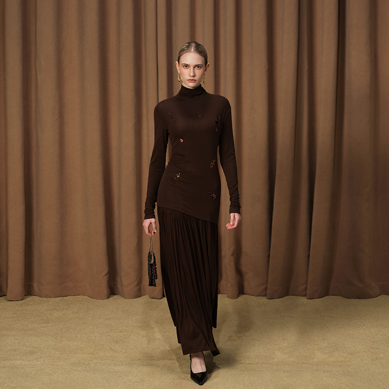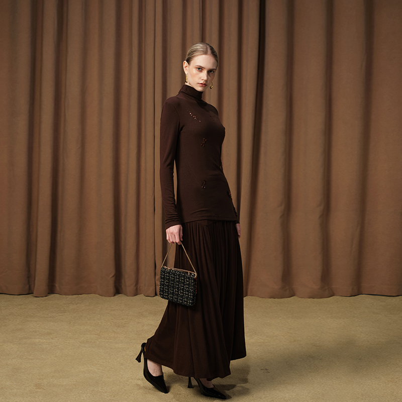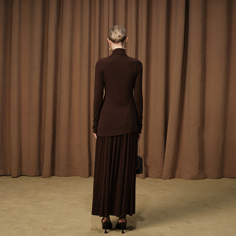 DIANAVEVINA秋冬新款 女半身裙 绵羊毛打底抽皱半裙包臀设计中长款