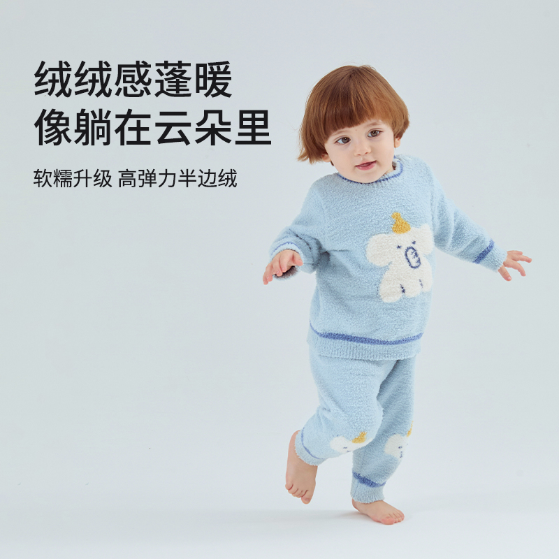 保暖防寒情侣家居服顶呱呱 睡衣套装 顶瓜瓜半边绒男士 女士加绒款