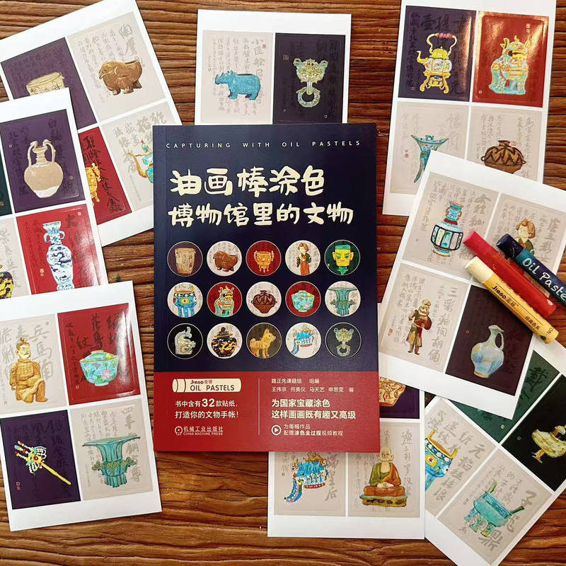 配视频讲解路正先教程新华文轩儿童中小学生成人解压学画画涂鸦填色绘本 文物 油画棒涂色博物馆里 油画棒涂色书 赠12色油画棒