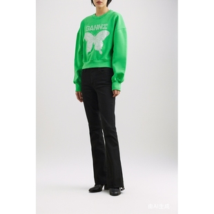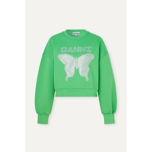 GANNI女品牌标志印花棉质绿色卫衣 折扣