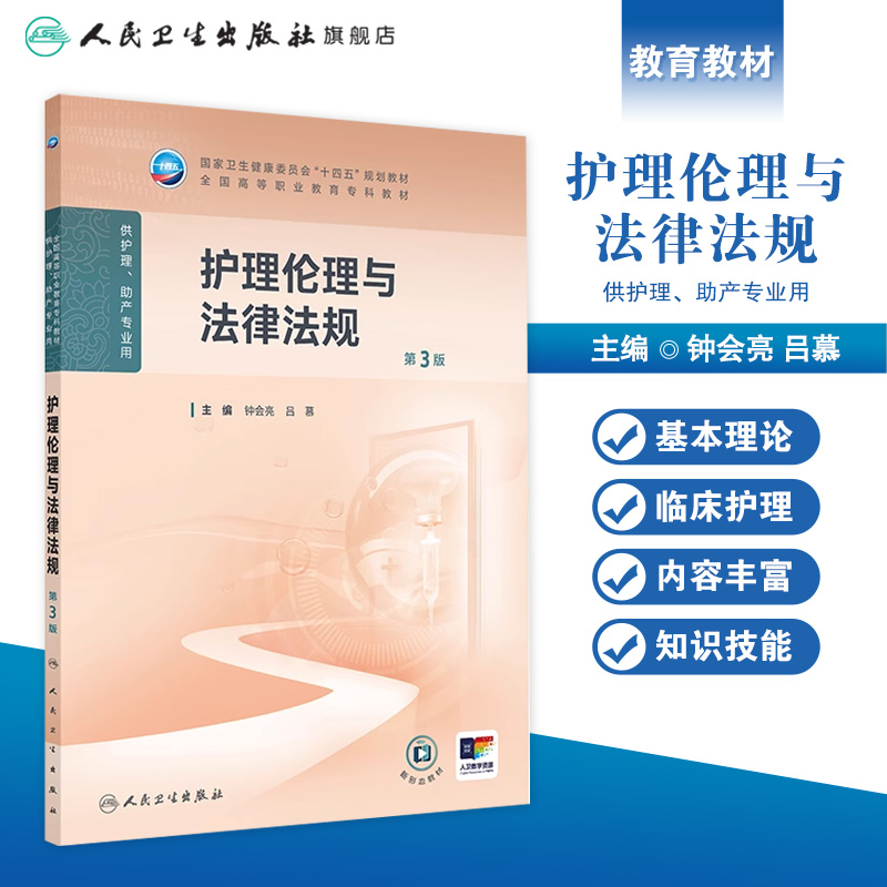 护理伦理与法律法规第3三版 社 人卫高职高专职教高等职业教育助产十四五教材专科内科外科儿科妇产科导论基础病理生理人民卫生出版