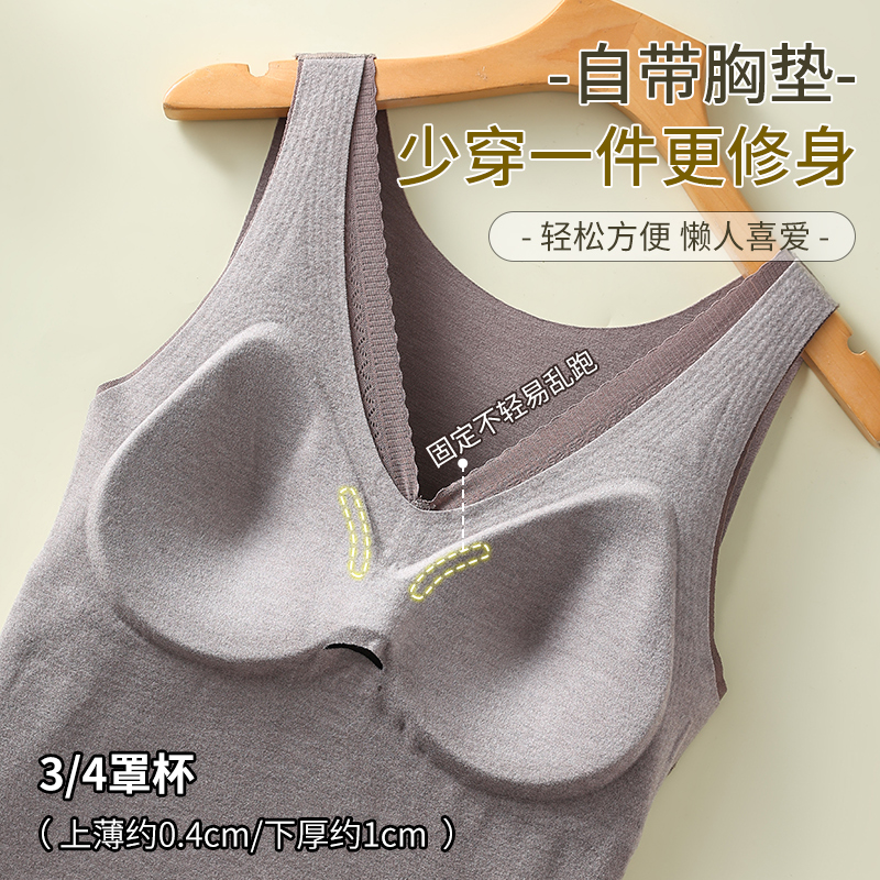 蝶安芬无痕保暖背心女打底春夏加绒加厚内搭带胸垫一体式 发热内衣
