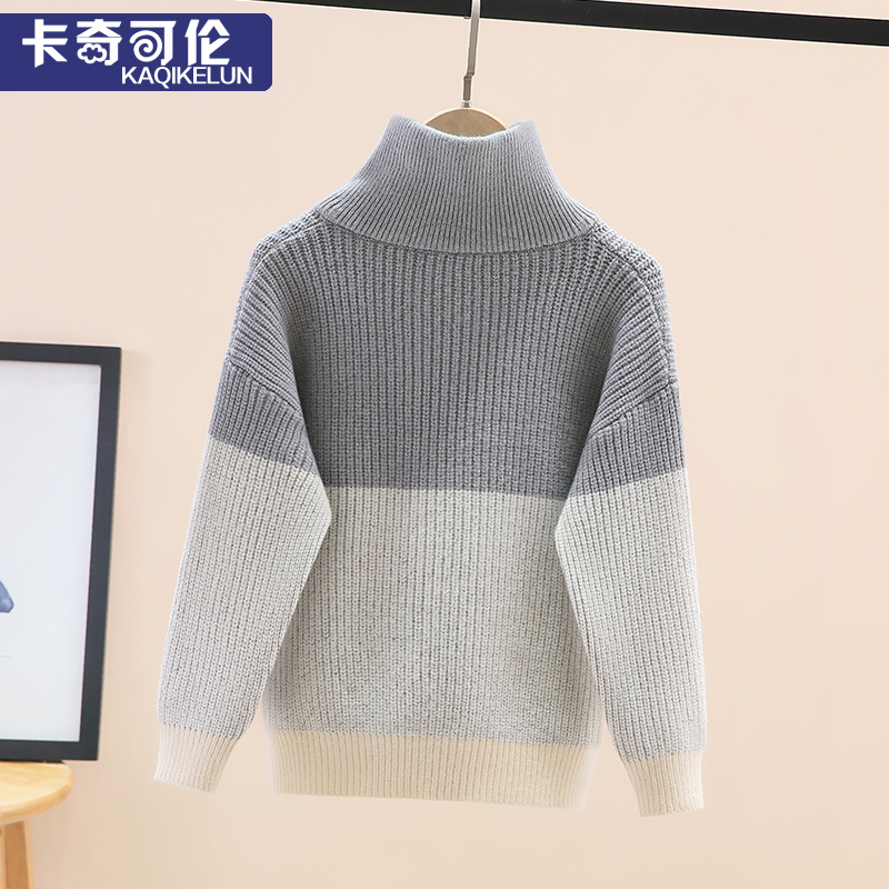 圆领100%纯山羊绒衫 灰色宽松打底上衣 女毛衣秋冬假两件拼色针织衫