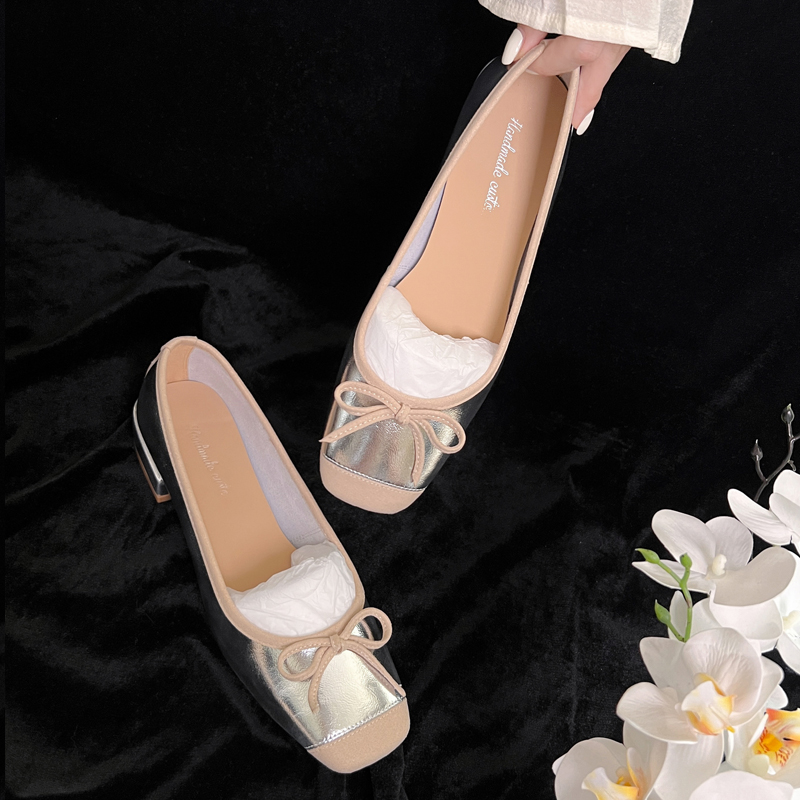 绝美气质通勤平底鞋 小个子内增高裸色方扣浅口单鞋 女2025春夏新款