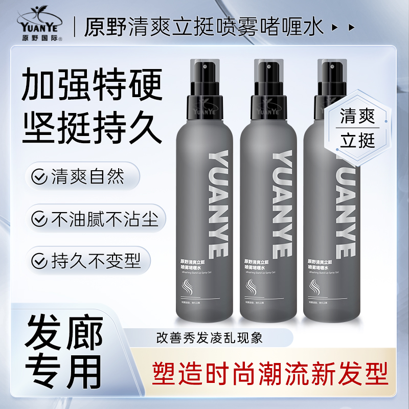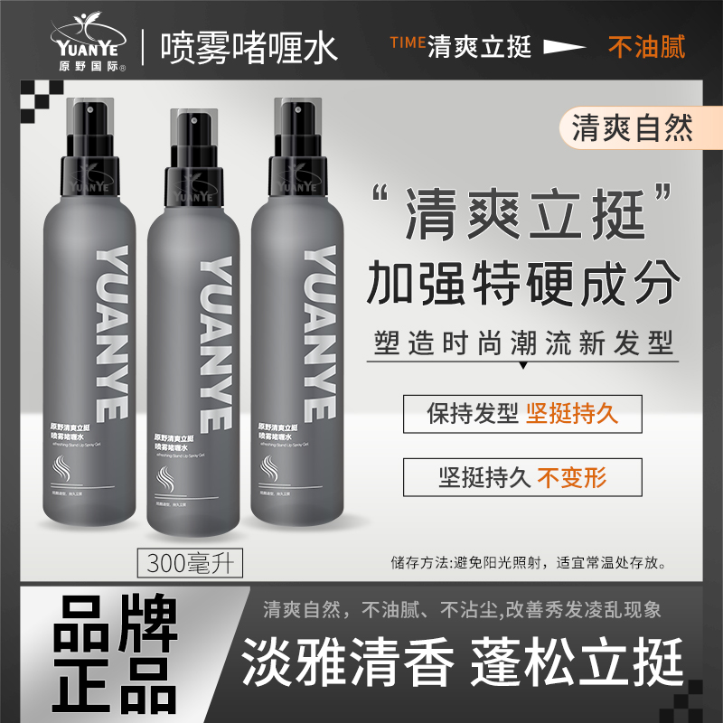 原野清爽立挺喷雾保湿 定型清香啫喱水 特硬持久发胶自然蓬松男士