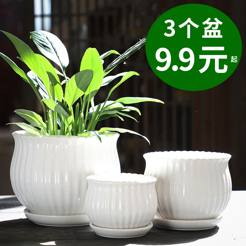 花盆陶瓷白色轻奢简约特价 清仓大号带托盘家用绿萝吊兰多肉小花盆