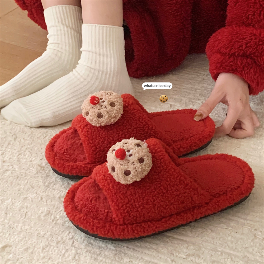 棉拖 静音防滑厚底保暖加绒毛毛鞋 棉拖鞋 家居室内女士一字拖秋冬季
