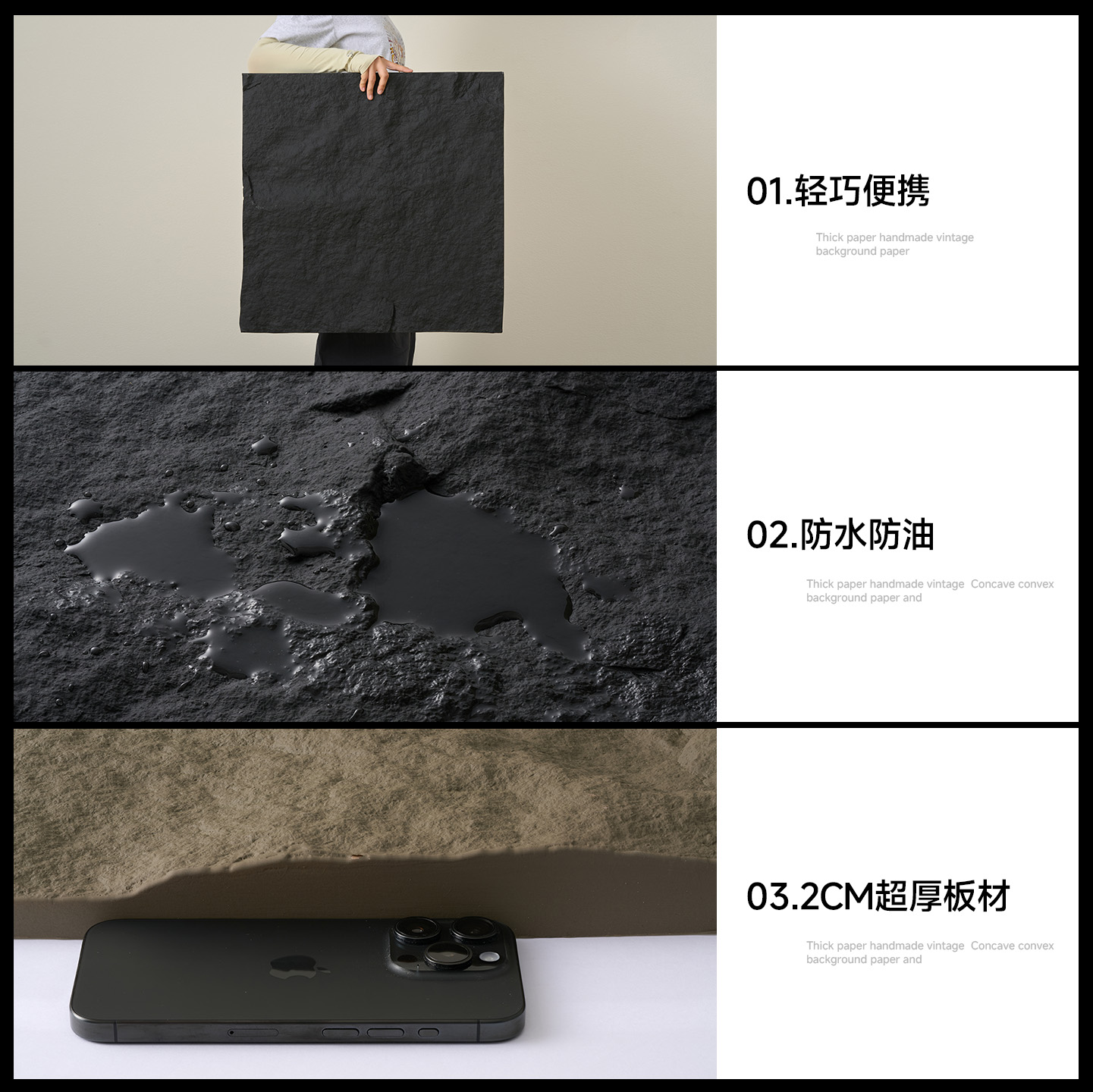 3D立体岩石石纹拍照背景板 美食手办化妆品静物产品摄影拍摄高级感场景布置搭建摆拍黑色灰色白色背景道具