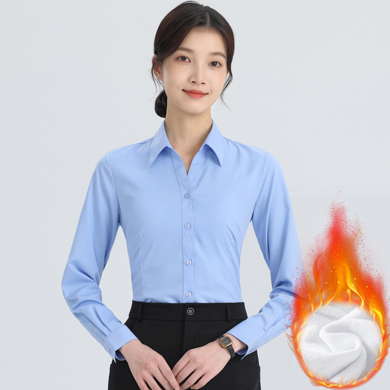 工装 工作服职业装 2025新款 加厚保暖正装 衬衣 白色衬衫 修身 加绒长袖