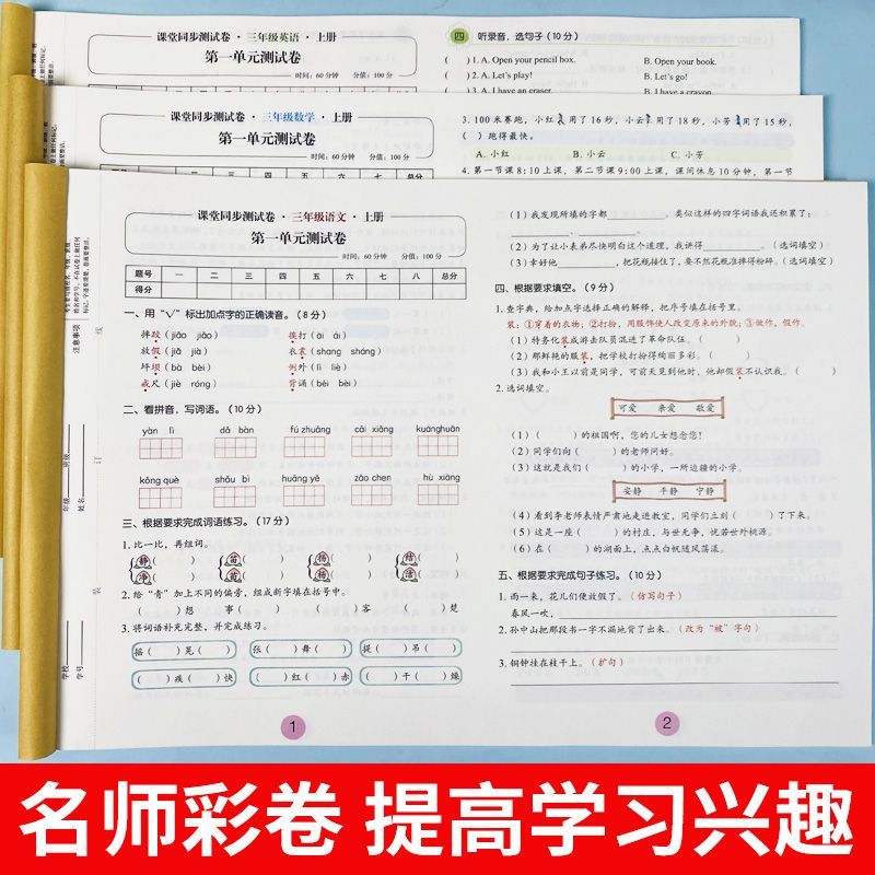 新版 期末黄冈100分小状元 语文数学英语练习题练习册单元 课堂同步试卷一年级二年级三四五六年级上册下册测试卷全套人教版