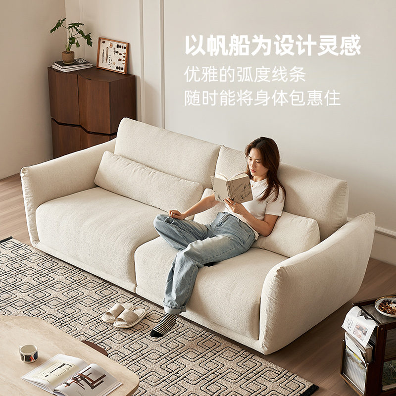 爱依瑞斯政府补贴现代布艺中古风奶油疗愈风小户型帆船沙发137