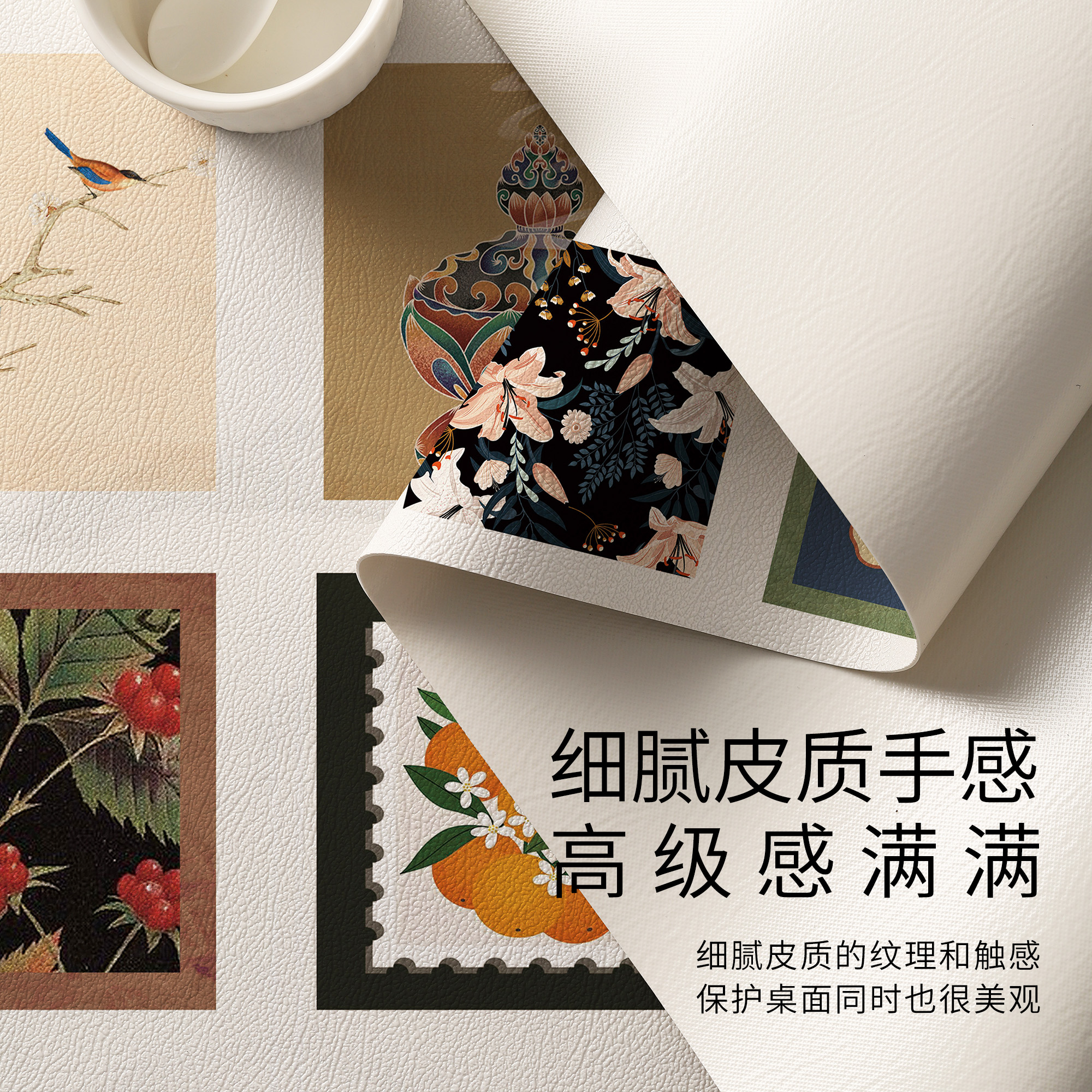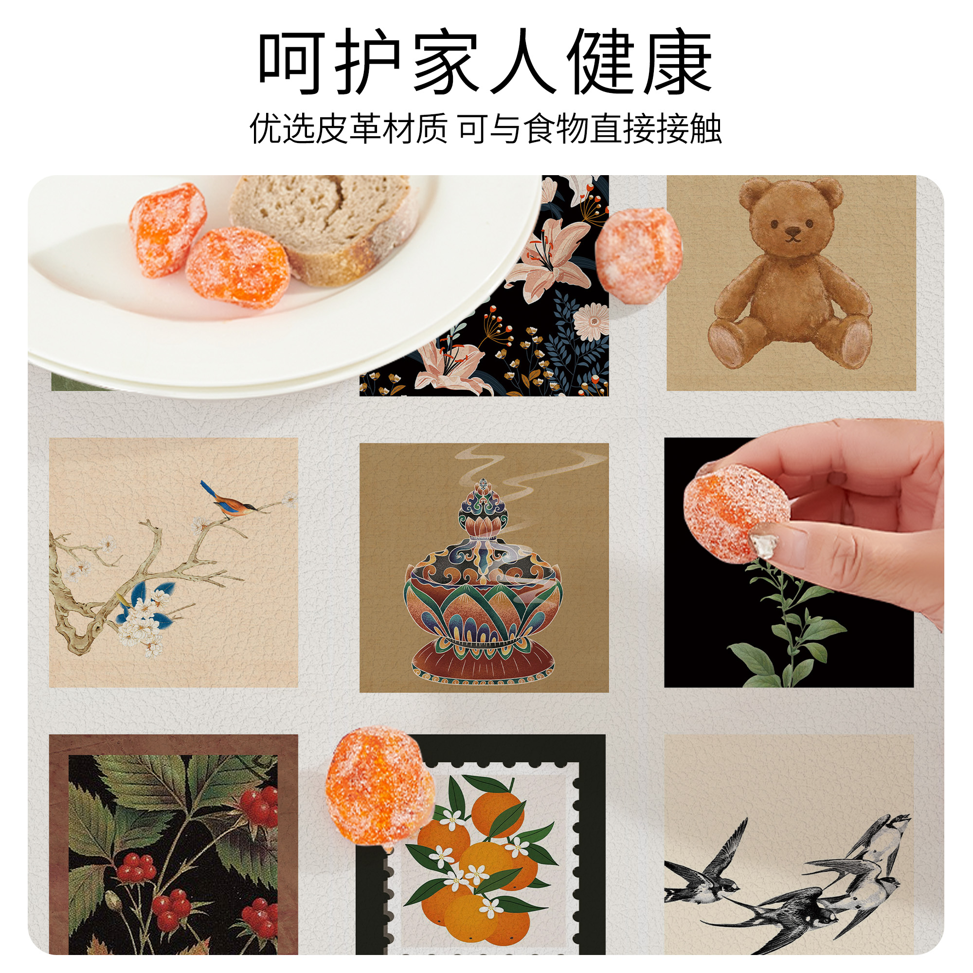 轻奢法式 复古高级感餐桌垫防水防油免洗防烫皮革中古风桌布保护垫